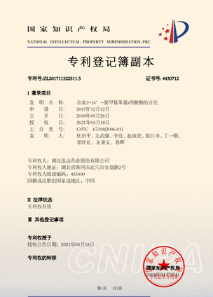 公司擁有一支高素質(zhì)科研隊伍,具備專業(yè)而高效的研發(fā)能力。近幾年,共取得科技成果30項,其中9項獲國家發(fā)明專利,2項獲湖北省科技進步獎,開發(fā)新產(chǎn)品8個,綠色合成、手性合成和催化等技術(shù)引領(lǐng)行業(yè)發(fā)展。主要銷往歐美、日本、韓國、中東、印度等40多個國家和地區(qū)。